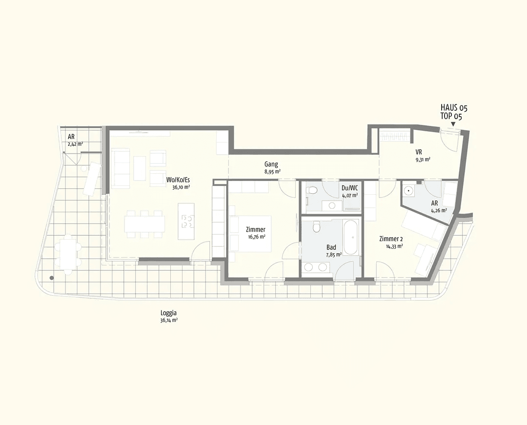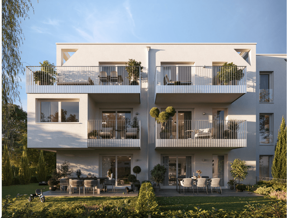 Jede Wohnung besitzt Balkon, Terrasse oder Eigengarten.